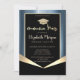 Gold Glitzer Graduierung und Konfetti auf blauem metallischem Hintergrund.