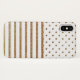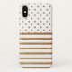 Chic iPhone X Gehäuse in Weiß mit einem Imitat goldenen Glitzer polka Punkt Muster, über die Oberseite des Gehäuses und Streifen, entlang der unteren Hälfte des Gehäuses. Passen Sie Ihren eigenen Text an.