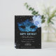 Girly Glitzer mit extravagantem Skriptnamen Typografie. Blau Rose und Imitate Glitzer Rand. Extravagante Maskerade-Maske. Ideal für Feierlichkeiten mit Quitten. Der gesamte Text ist einstellbar. Schöne Blumen und Imitate Glitzer funkeln Design.