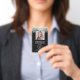 Dieses moderne Namens-Abzeichen-Design kann mit Ihrem Firmennamen, Logo und Kontaktdaten sowie einem Mitarbeiter-Foto und Strichcode angepasst werden.