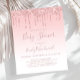 Diese trendige Babydusche-Einladung besticht durch einen funkelnd, rosa tropfenden Imitat-Glitzer auf einem rosa Ober-Hintergrund. Die Wörter "Baby Shower" und der Name der Mutter-zu-be erscheinen in Rose rosa Handschrift, der Rest in Sans Serif Schriftart.