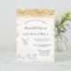 Eine moderne, stilvolle und glamouröse Einladung zu einer Quinceañera, 15. Geburtstagsfeier. Ein stilvoller weißer Hintergrund mit Imitaten, goldenem Glitzer und einem Kleid. Der Name ist mit einem modernen handgeschriebenen Stilskript geschrieben. Personalisieren Sie Ihre Party-Daten und fügen Sie sie hinzu.