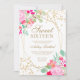 GSummer hellrosa und grün florale Aquarell und goldene Glitzer Konfetti Typografie Sweet 16 Geburtstag mit handgemalten rosa, orange Blume, grüne Aquarellblätter, perfekt für Frühjahr und Sommer Geburtstagsparty.