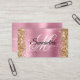 Erstellen Sie Ihre eigenen Imitate funkelnd Gold Glitzer und hellrosa Folie Visitenkarten. Auf der Vorderseite befindet sich ein extravagant-schwarz-weißes Schriftzeichen-Monogramm. Auf der Rückseite finden Sie grundlegende Kontaktinformationen. Sie können die Schriftart und Text nach Bedarf anpassen. Alle mädchenhaften Grafiken und Elemente dieses Designs werden wie ein digitales Foto gedruckt.
