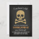 Kommen Sie mit dieser schicken Halloween-Einladung gekleidet um zu töten, mit einem goldenen Glitzer-Schädel mit schwarz-weißem Schädel-Rückseite.