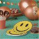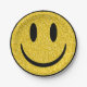Ein gelber, digitaler Glitzer texturierte lächelndes Gesicht.