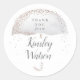 Eine hübsche, feminine Babydusche, die sich bedankt, ist ein Aufkleber mit Rose Gold Glitzer Konfetti Sprinklen, die auf einen weichen grauen Aquarellschirm mit kalligraphischem Namen fallen. Eine tolle Möglichkeit, Ihren Babyduschfavoriten Flair zu verleihen und den Gästen zu danken, dass sie mit Ihnen feiern.