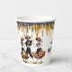 Diese lustigen Halloween-Party-Papiertassen sind mit einem Trio von fröhlichen tanzenden Skeletten in ihrem Party gekleidet. Oben auf der Tasse sind Imitate glitzernde schwarz-orange Tropfen. Das Skelettbild wird zweimal wiederholt, mit schwarzem Text dazwischen steht "Happy Halloween", und deinem benutzerdefinierten Text unten. Es ist einfach, den Text zu ändern! *Der Glitzer wird simuliert; es wird kein Glitzer verwendet.