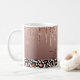 Trendy Glitzer Tropfen Leopard Rose Gold Girly Tasse. Personalisieren Sie diese Tasse mit Ihrem Namen oder Monogramm. Das Design zeichnet sich durch funkelnd Glitzer-Tropfen in Rose Gold mit einem schwarzen, weißen und Rose goldenen Leopardenprint aus. Für zusätzliche Schriftart-Optionen klicken Sie auf "Weiter anpassen", um das erweiterte Design-Tool zu verwenden.