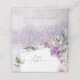 Ein handgeschriebener, signierter Schriftart kombiniert mit geometrischen Rahmen, funkelnd Hintergründen und üppigen Blumen werden in dieser Kollektion verwendet, um Ihnen einen gemütlichen und intimen Set für Ihre Hochzeit zu geben. Die hier gezeigte Hochzeitstisch-Platzkarte mit ihrem blumengeschmückten Eckchen in Lila, Lila und Creme bietet Platz, um dem Gast einen Namen und eine Tischnummer hinzuzufügen. Suchen Sie ID889, um alle Produkte in diesem Hochzeitsfest Set zu sehen.