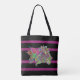 Farbenfroher Fuchsia Glitzer mit schwarzen Streifen und farbenfrohe Blume Design personalisiert Tote Tasche.
