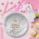 Glitzy Silver White Cupcake Bow Birthday Pappteller