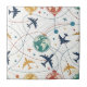 Vibrant seamless pattern ceramic tile featuring airplanes, globes, flight paths, stars, and travel-inspired icons in a playful aviation style. Ideal for travelers, aviation enthusiasts, frequent flyers, and anyone who loves global adventure aesthetics.