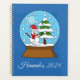 Illustration d'un mignon globe de neige avec à l'intérieur d'un paysage d'une montagne enneigée avec bonhomme de neige et pin. Ce design est une idée cadeau pour les amateurs de saison hivernale, les amateurs de neige et de nature. Personnalisez ou customisez ce joli planificateur de noël pour vos amis et votre famille.