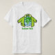 Cartoon Illustration der Erdkugel durch grüne Jacke geschützt. Transparentes Design für helle und dunkle Gegenstände. Passen Sie es mit Ihrem Text an.