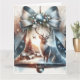 Weihnachtskarte mit einer Glocke mit Landschaft und Rentieren