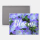 Hübsche, hellviolette und weiße Campanula-Glockenblumen von meiner Originalfotografie dieser Blumen in meinem Garten. Hier dargestellt auf einem maßgeschneiderten dekorativen Magneten mit einer inspirierenden "Blüte" in Schreibschrift. Personalisieren Sie diesen floralen Magneten mit jeder beliebigen Nachricht oder löschen Sie sie einfach, um nur die Blumen anzuzeigen. Schön für jeden Gärtner oder Blumenliebhaber!