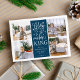 Carte photo de vacances à base de typographie moderne présente quatre de vos photos préférées dans un format carré, avec "Gloire au nouveau-né roi" centré dans la typographie de style lettré blanc. Personnalisez avec votre nom de famille, vos noms individuels et/ou votre message de Noël personnalisé. Les cartes sont retournées à un motif de neige blanche et étoiles sur un arrière - plan bleu turquoise foncé riche.