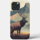 Schöne Naturlandschaft mit Bergen und Bullenelch in gedämpften Farben.
