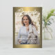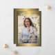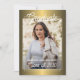 Einzigartige und trendige Gratulationen Graduieren Ankündigung und Feiern Party Einladung Karte, mit einem klassischen Imitat glänzend goldfarbenen Hintergrund. Mit Raum zum Anpassen oder Personalisieren mit einem Foto, den Namen des Absolventen, Klasse Abschluss Jahr, High School, künftige Uni oder Universitätsname, und feiern Party-Event-Informationen. Lass der Familie, Freunden und Nachbarn, dass es einen glücklichen Absolventen gibt, der bereit ist, die Welt zu erobern, und laden Sie alle ein, das glückliche Ereignis mit Ihnen zu feiern!