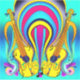 Eine brillante Leinwand aus Aqua, Blues und Rosa wurde mit Gitarren als Schwerpunkt erstellt. Die Kombination aus kräftigen Farben und Gitarren gibt ein Gefühl von Abenteuer.