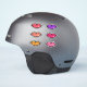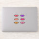 Sechs kitschige Vinyl-Aufkleber aus glänzenden Lippen: lila, heiß rosa, rosa, korallenrosa, pfirsichfarben und goldgelb.