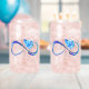 Luminous infinity symbol with glowing, beautiful, lushly blooming rose made of blue flames on black background.
