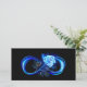 Luminous infinity symbol with glowing, beautiful, lushly blooming rose made of blue flames on black background.