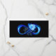 Luminous infinity symbol with glowing, beautiful, lushly blooming rose made of blue flames on black background.