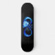 Luminous infinity symbol with glowing, beautiful, lushly blooming rose made of blue flames on black background.
