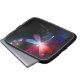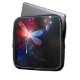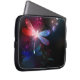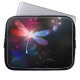 Glowing, flying, red dragonfly, with transparent, detailed wings on dark, nocturnal, luminous background with tropical plants and fireflies. Red dragonfly.