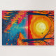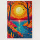 Bring this breathtaking scenery to life piece by piece with our engaging jigsaw puzzle. The artwork showcases a glowing sunset over a peaceful river, surrounded by vibrant fiery foliage and dark tree silhouettes. The rich gradients and colorful details make it a delightful and relaxing challenge for nature lovers and puzzle enthusiasts.