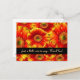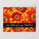 Helles und feines Frühjahrsblumendesign mit leuchtend gelben und orangefarbenen Gerbera. Dieses lebhafte, farbenfrohe Bild enthält helle Mango-Gelbtöne, intensive Orange und lebendige feurige Rot, die wirklich Pop. Dankeskarte.