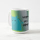 Ein niedlicher, blauer Nilpferd auf schattigem, blauen und grünen Hintergrund. Nehmen Sie Ihre Liebe für dieses große Tier ein, den Hippopotamus auf dieser Kaffeemaschine-Tasse. Das Sprichwort Happy as a Hippo kann nach Wunsch geändert werden.