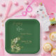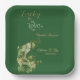 Erhöhen Sie das Ambiente Ihres Brautparty-Party mit maßgeschneiderten Tellern. Am Vorabend des St. Patrick's Day laden Sie Ihre Gäste zu einem Brautparty mit glücklichen Kleeblättern ein. Die Illustration hat "Glück in Liebe" mit grünen, goldschimmernden Kleeblättern - 4 Blatt Kleeblatt. Die Kalligraphie ist leicht anpassbar.