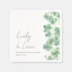 Glück in der Liebe St. Patrick's Day Brautparty Party Napkin. Feiern Sie die zukünftige Braut mit diesem festlichen und charmanten Design, das sich perfekt für ein St. Patrick’s Day Brautparty eignet. Die Serviette besticht durch lebhafte Aquarelltöne oder Kleeblätter, die in einer Mischung aus frischen grünen Farbtönen auf der rechten Seite liegen und eine lebhafte und spielerische Touch verleihen. Der Text ist elegant mit "Lucky in Liebe" in einem wunderschönen Script-Schriftart angeordnet, während "Bride’s Name Brautparty" und das Duschdatum unten in klassischer Serifentypografie dargestellt werden, was ein ausgeglichenes und raffiniertes Aussehen schafft. Vollständig anpassbar, können Sie Text, Schriftart und Farben an den Stil Ihres Events anpassen. Ideal für ein "Glück in der Liebe"-Thema oder jeden St. Patrick’s Day.