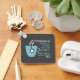 Schlüsselanhänger Design für Teeliebhaber bietet die Silhouette der Wassa Tee-Tasse mit lustigem Zitat, das lautet: "Glück kommt aus innerer Ruhe. Der innere Frieden kommt von TEA." Aqua und Weiß auf kohlegrauem Hintergrund