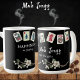Glück ist Mah Jongg spielen mit der Girls-Kaffee-Tasse! Dies ist eine lustige Mah Jongg Kaffee-Tasse mit Aquarellkacheln und einem chinesischen Crab Apple Stamm Set vor einem schwarzen Hintergrund. Für Sie oder den Mah Jongg Liebhaber in Ihrem Leben, es ist das perfekte Geschenk.