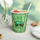Glück und ich bekommen es St Patrick's Day Party Paper Cups. Ein schönes Zitat-Bild mit einem großen grünen Hut und zwei Gnomen, die grün kariert sind. Grün kariert umhüllt. Vorlage personalisieren.