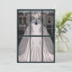 Ideal für jede Braut mit mädchenhaftem Charme und Vintagem Stil. Ein schönes, kaum rosa, mermaid Hochzeitskleid in einem schicken, Vintagen Schaufenster, das Interieur der Visitenkarte zeigt das Interieur des Stores, wobei das Kleid und der Schleier aus der Kleiderform herausgenommen und in große rosa Kisten mit rosa Bögen eingewickelt wurden. Ideal für Braut, Verlobung Glückwünsche oder Hochzeitsveranstaltungen.