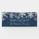 Elegante "frohe Feiertage" Familienname-Silber-Marine-Blau-Winter-Schneeflocke-Weihnachtsfahne.