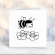 Schwarz-Weiß-Illustration einer bezaubernden lächelnden Biene, die über den Blume herumschwebt.