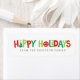 Dieser Ferienaufkleber wurde für die "glückliche" Kollektion von Lea Delaveris Design konzipiert und bietet lustige, spielerische und farbenfrohe Handschriften mit Abbildungen eines Baumes und eines Ornaments sowie einen Ort für eine individuelle Nachricht. Das rote, grüne und Limone Farbschema macht es zu einem festlichen Geschenketikett.