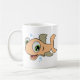 Dieses kleine große mit Augen fischartige Blicke wirklich glücklich! Er wird durch blaue Blasen umgeben und schaut, wie er um Underwater schwimmt.