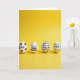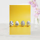 Dieses Design zeigt ein weites Feld aus strahlendem Gelb, das sich wie Sonnenschein anfühlt, mit vier glatten weißen Eiern, die im unteren Drittel wie Freunde eng beieinander aufgereiht sind 🌷. Auf dem linken Ei erscheint das Wort „YEAH“ in Schwarz mit einigen winzigen schwarzen Herzen, die darum herum verstreut sind, wie ein selbstsicherer Jubel, der für jemanden Besonderes gemeint ist. Das nächste Ei trägt die Worte „YOUR PERSONAL“ in Schwarz, unter einem ordentlichen Halbkreis aus kleinen schwarzen Punkten, der wie eine sanfte, aufmerksame Geste wirkt. Das dritte Ei ist mit überlappenden schwarzen Buchstaben gefüllt, in denen man Bruchstücke wie „HAPPY“ und „JOY“ erkennen kann, was den Eindruck von aufgeregtem Geplauder zwischen engen Freunden erweckt 🐰. Auf dem rechten Ei sitzt ein einfaches lächelndes Gesicht in Schwarz, zentriert, mit kurzen strahlenförmigen Linien, die ein warmes Lächeln suggerieren, das auf die Gruppe gerichtet ist. Die hochkontrastiven schwarzen Markierungen heben sich scharf von den weißen Eiern ab, und