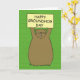 Ein Cartoon groundhog stehend oben auf seinen hinteren Beinen, die ein Zitrone farbiges Zeichen halten, das "glücklichen Groundhog Tag" sagt. Das Bild hat einen vibrierenden grünen Hintergrund.