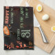 Dieses schöne Halloween Monster, Willkommen in einem Spuk Haus Küche Handtuch ist ideal, um Ihre Küche während der Halloween-Feiertage, ein perfektes Stück zur Dekoration Ihrer Küche oder Esszimmer. Dieses Design zeigt kleine Monster auf schwarzem Hintergrund mit dekorativen Blätter und Kürbissen . Sie können den gesamten Text leicht anpassen. Karo der Auflistung für passende Elemente.