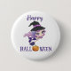 Glückliche Halloween-Taste Girl Spooky Meerjungfrau-Taste Creepy Meerjungfrau Hexe-Taste. Dieser helle und farbenfrohe Knopf ist mit niedlicher, kleiner Meerjungfrau, die auf einem Besen über der Kürbislaterne Jack-o-Laterne fliegt, ausgestattet. Sie können die Größe und Form der Schaltfläche ganz einfach im Menü anpassen.