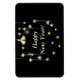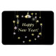Magnet mit meinem digitalen Design von silber und goldfarbenen Sternen, Glocken und Raster auf einem schwarzen Hintergrund. In dem Text steht "Happy New Year"!