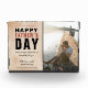 Glücklicher Vatertag Nachricht Watercolor Familie Foto Block. Text und Namen sind auf einem rot-orangefarbenen Hintergrund. Fügen Sie Ihr Foto hinzu und passen Sie die Nachricht und die Namen an. Eine hübsche Foto-Plakette für einen Vater oder Großvater zum Geburtstag oder Geburtstag des Vaters.
